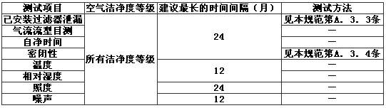 最長測(cè)試時(shí)間間隔是根據(jù)近年來我國一些合資企業(yè)的內(nèi)部質(zhì)量管理?xiàng)l款以及ISO 14644-2的空氣潔凈度認(rèn)證測(cè)試要求而編制的。