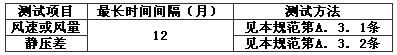 表A.2.2-2 靜壓差、風(fēng)速或風(fēng)量測(cè)試
