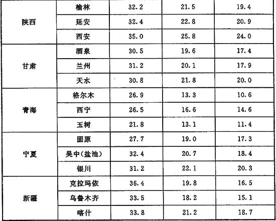 5 中國河流年均水溫的地區分布形勢大體與氣溫一致。河流年均水溫略高于當地年均氣溫,差值一般為1℃~2℃。但當高山冰雪融水在河流補給中占主要地位的地區則相反,年均水溫低于氣溫1℃~2℃。中國河流水溫的年內變化過程,大部分地區均為在春、夏增溫階段,水溫低于當地氣溫;秋、冬降溫階段,水溫高于當地氣溫。采用蒸發冷卻空氣處理方式,冷卻水采用直流式地表水,可降低被處理空氣溫度,此時地表水即為天然冷源。